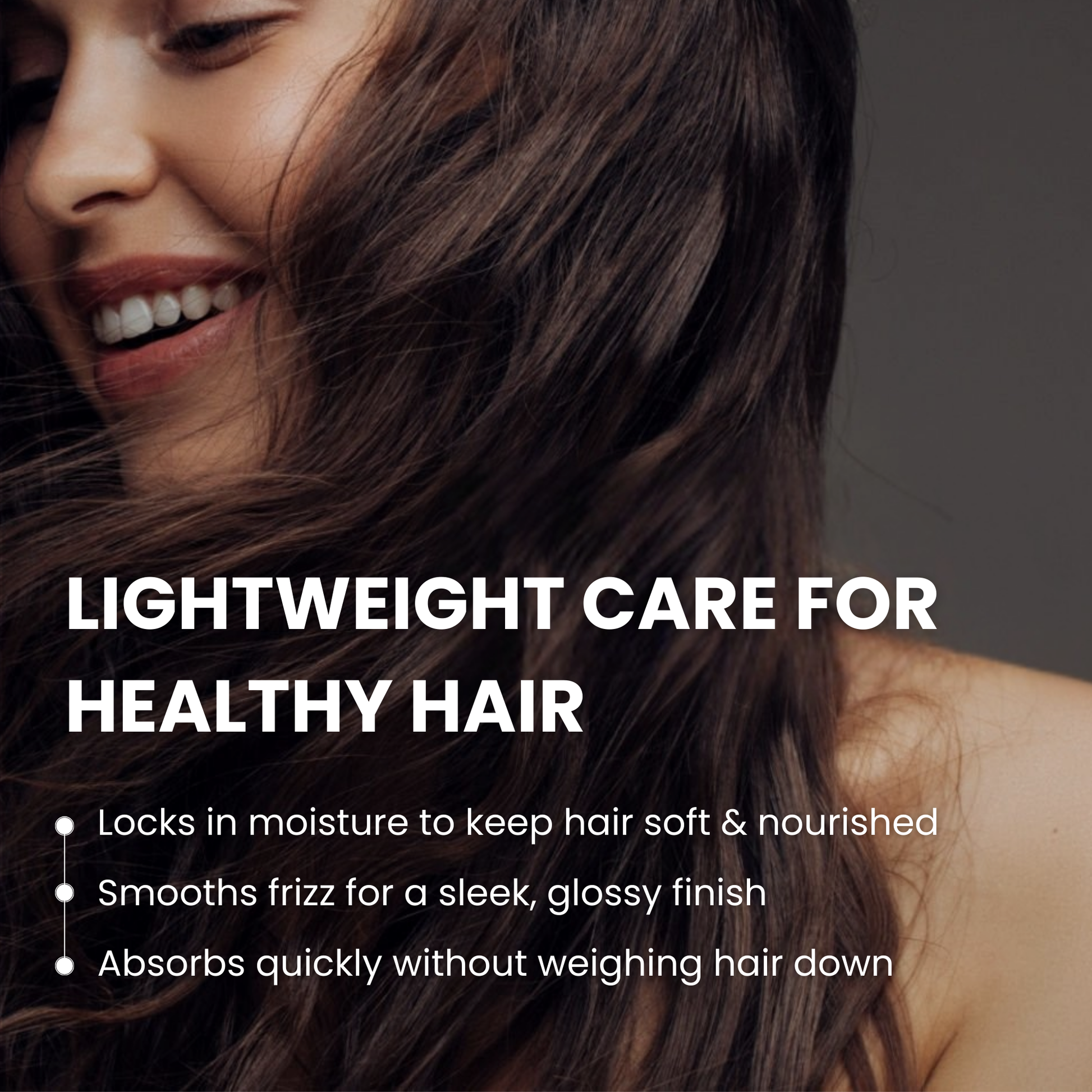 • For Hair: Locks in moisture to keep hair soft and nourished, smooths frizz for a sleek, glossy finish, and absorbs quickly without weighing hair down.