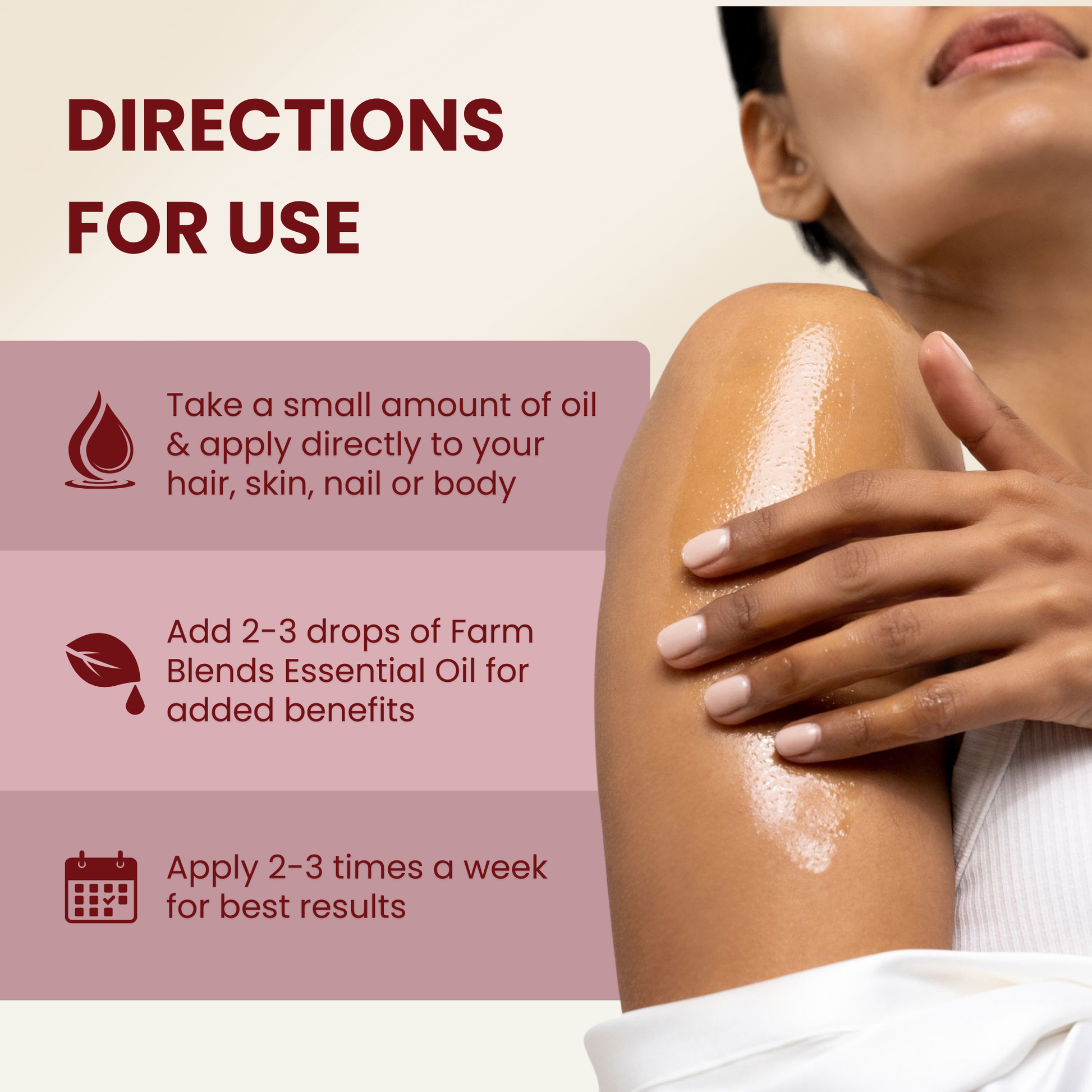 • Take a small amount of oil and apply it directly to your hair, skin, nails, or body.