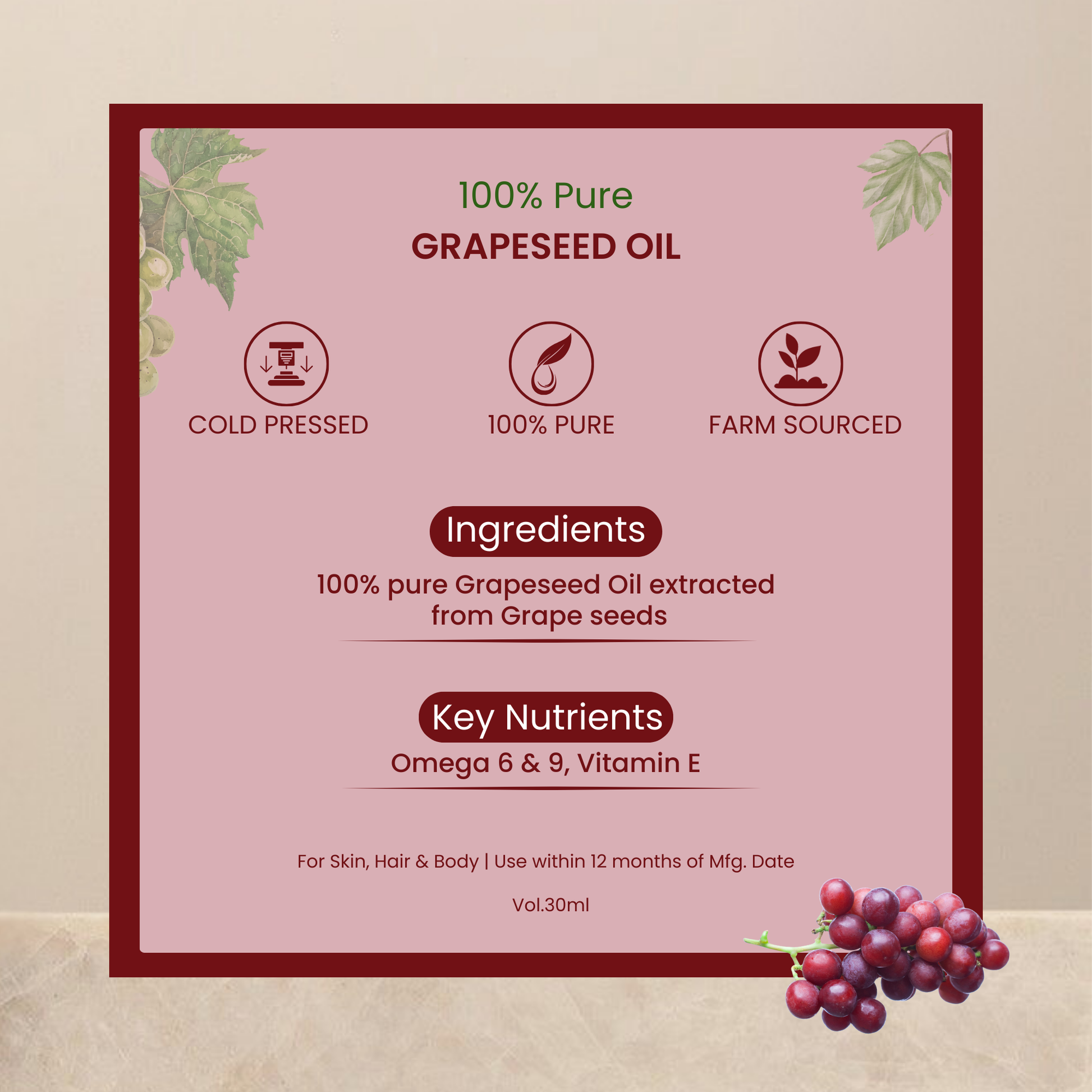 • 100% Pure Grapeseed Oil: The sole ingredient is this premium oil extracted from grape seeds.