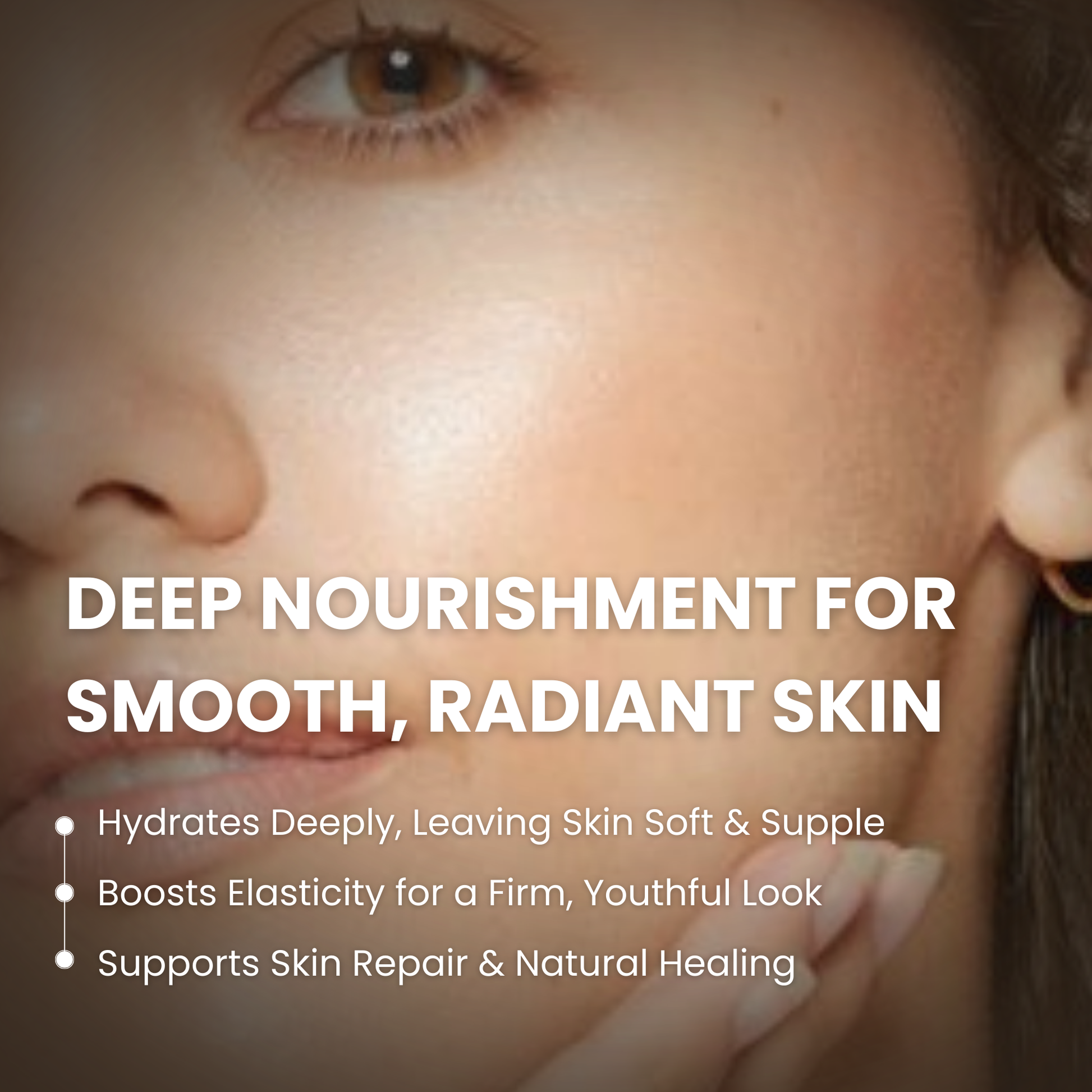 • For Skin: Hydrates deeply to leave skin soft and supple, boosts elasticity for a firm, youthful look, and supports the skin's natural repair and healing processes.