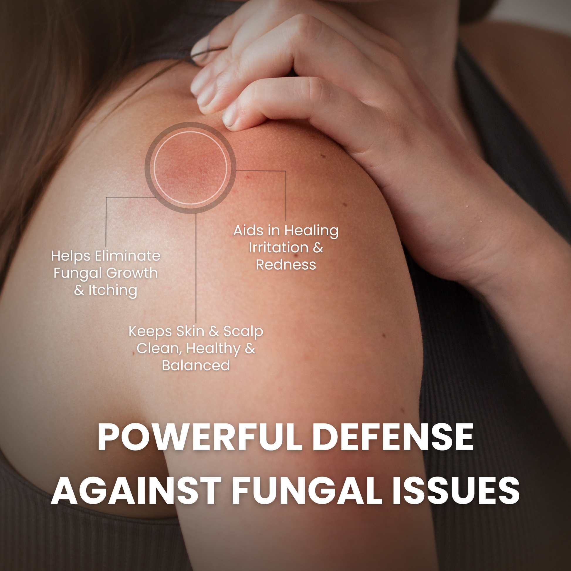 • For Body: Provides a powerful defense against fungal issues by helping to eliminate fungal growth and itching, and aids in healing irritation and redness to keep skin and scalp balanced.
