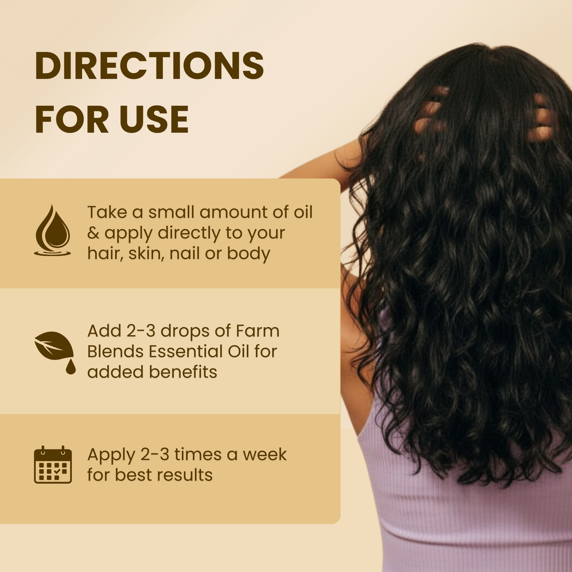 • For Hair: Promotes stronger roots, stimulates growth, and helps prevent premature greying and hair fall while enhancing natural shine and smoothness.