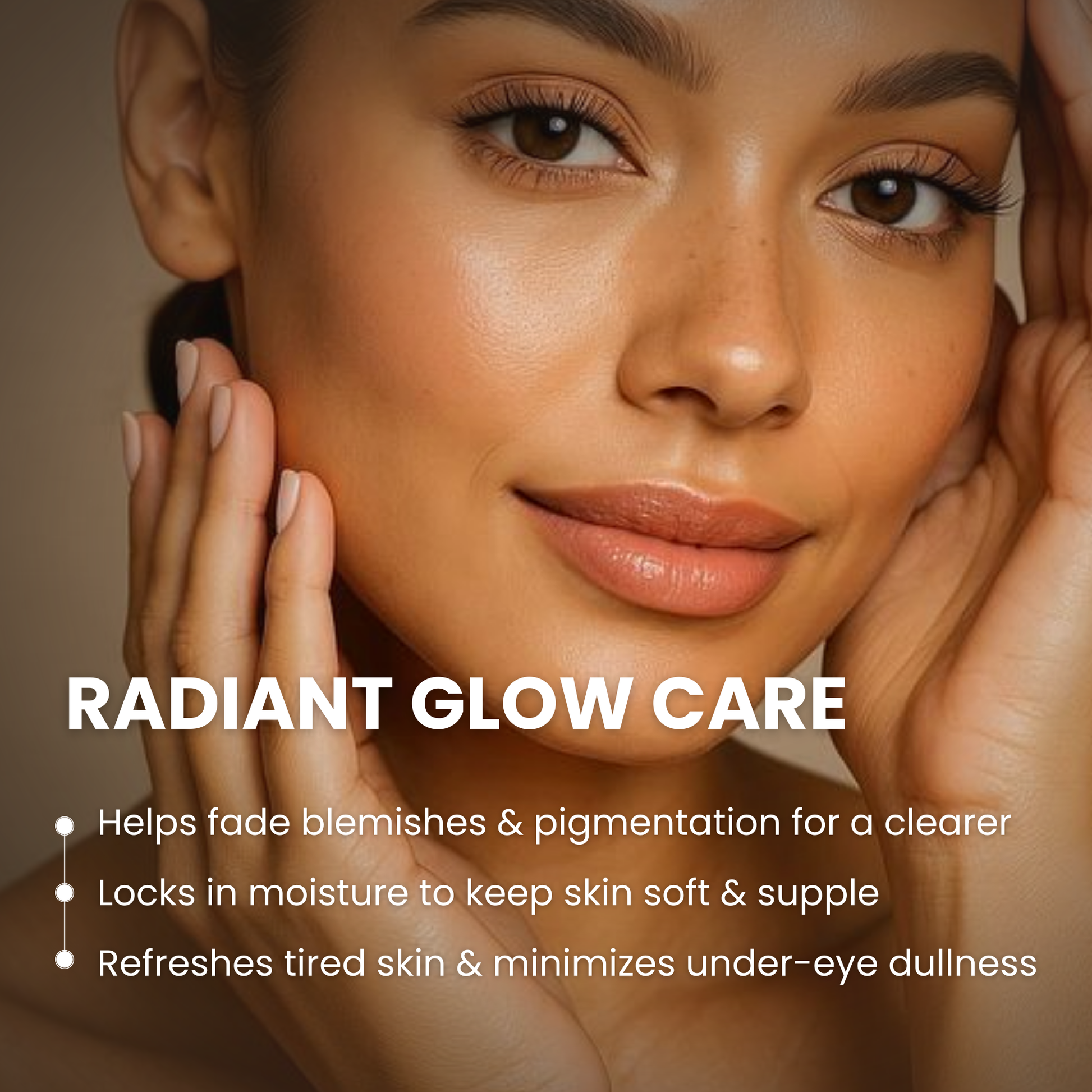 • For Skin (Radiant Glow Care): Helps to fade blemishes and pigmentation for a clearer complexion, locks in moisture to keep skin soft and supple, and refreshes tired skin while minimizing under-eye dullness.